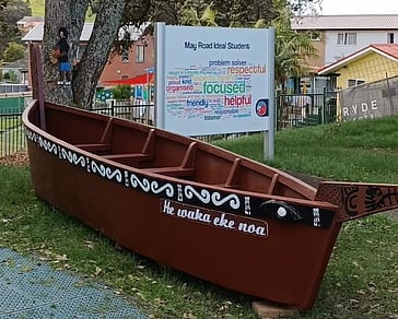 Two members of our shed Chris Stuart and Don Hook took upon themselves to solve this. The Waka (canoe) demonstrates a means of transport, and the Whare (meeting house) is where the learning can take place.
