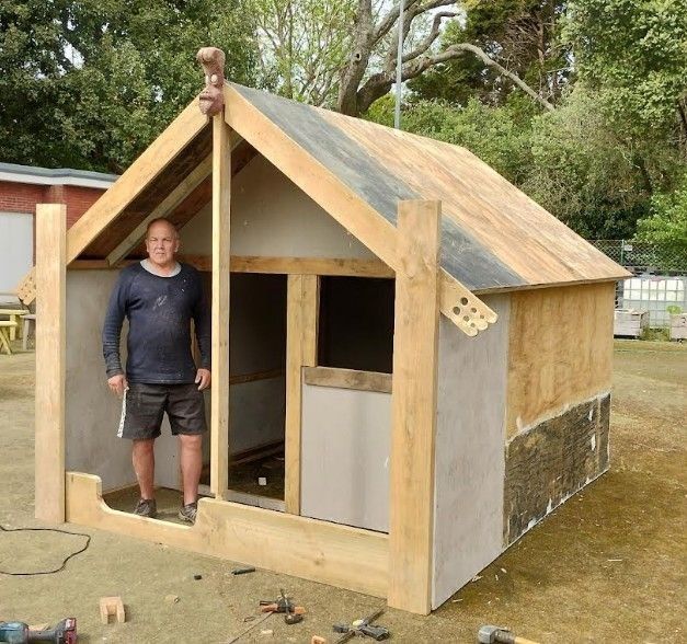 Two members of our shed Chris Stuart and Don Hook took upon themselves to solve this. The Waka (canoe) demonstrates a means of transport, and the Whare (meeting house) is where the learning can take place.